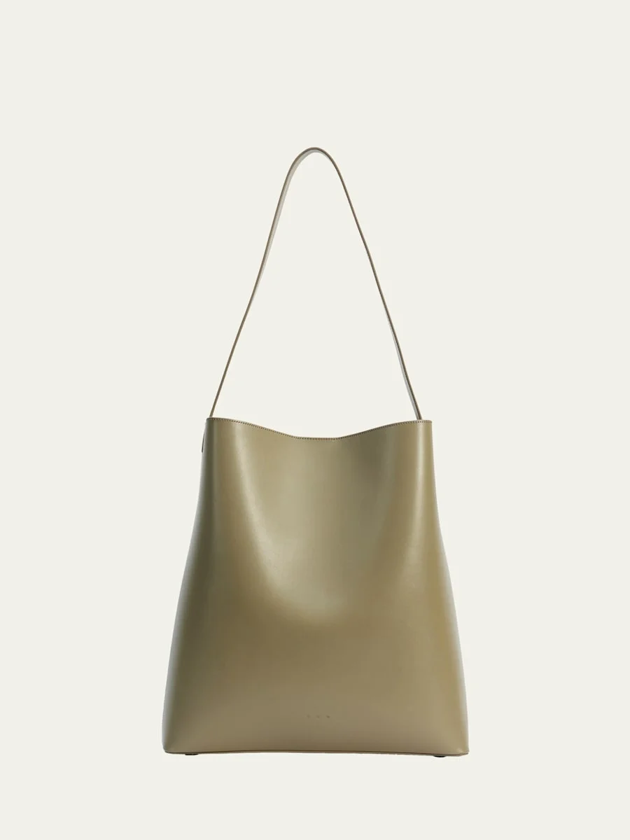Aesther Ekme "Sac" shoulder bag in leather Shoulder strap Open top with magnetic closure Center slip compartment divides interior; fits a 13" laptop Lining: Polyester Approx. 14.5"H x 14.1"W x 4.3"D Made in Spain Online Inquiries: BGS21_V6FJP| Store Inquiries: #4702509