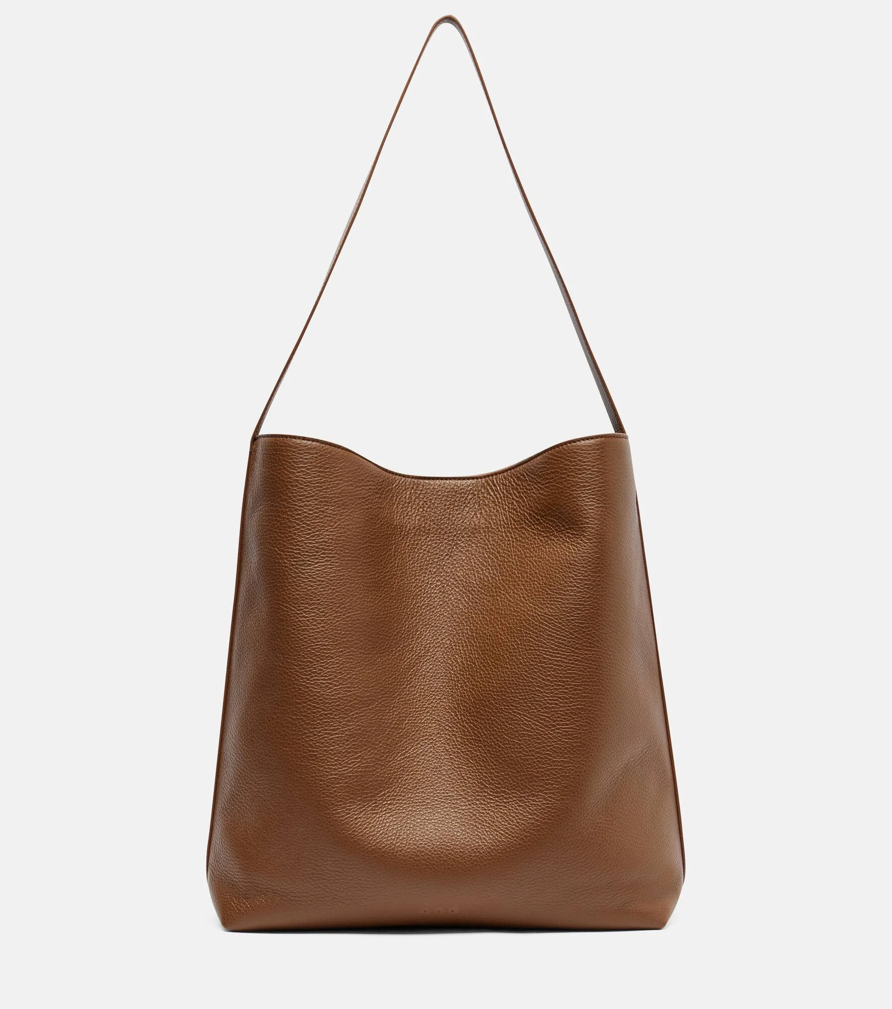 Modern silhouettes and high-quality materials shape Aesther Ekme's vision of refined minimalism. Designed to fit your daily essentials, the Sac Supple tote bag is made from leather with a spacious interior, a magnetic fastening, and an inner slot pocket. Product Details - Material: calf leather - Lining: fabric - Made in Spain - Designer color name: 241 Grain Brownie - Item color: brown - Internal details: internal slot pocket - Closure: magnetic fastening - Shoulder strap - Includes: dust bag - Item number: P01039120 Size & Fit - Height 34cm-13.5" - Width 32cm-12.5" - Depth 13cm-5" - Length of handles 65cm-25.5"