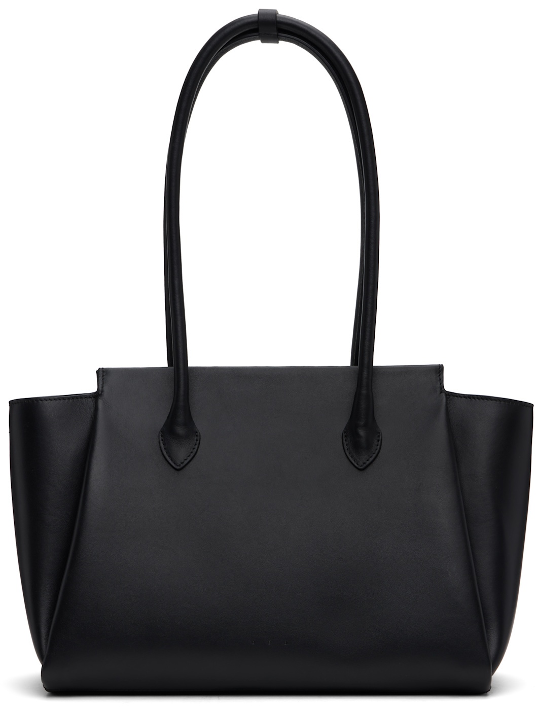 Structured buffed calfskin top handle bag in black. - Post-stud tab at rolled carry handles - Padded panel at face and back face - Logo embossed at face - Bumper studs at base - Magnetic closure - Patch pocket at interior - Twill lining - H9 x W14 x D6 Supplier color: Black