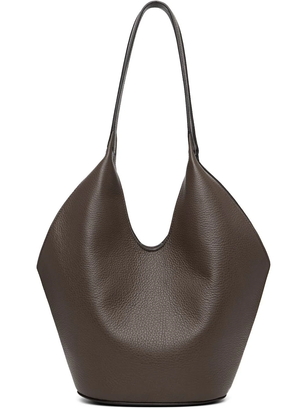 Grained calfskin tote. · Fixed shoulder straps · Logo embossed at face · Magnetic closure · Card slot at interior · Faille lining · H13" x W14" x D5.5" Available exclusively at SSENSE. Supplier color: Grain chestnut Calfskin. Made in Spain 252239F049012