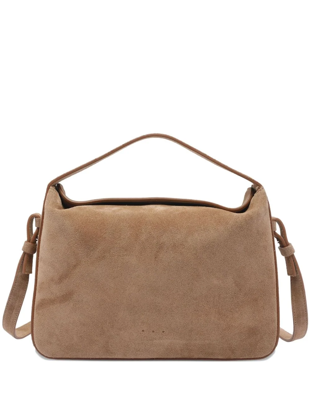 top-handle suede-leather shoulder bag Highlights - Beige - Suede texture - Magnetic closure - Single top-handle - Adjustable strap Imported Composition Outer: Calf Leather 100% SIZE & FIT Measurement DEPTH 2.36 in(6 cm) HEIGHT 7.48 in(19 cm) WIDTH 10.23 in(26 cm)
