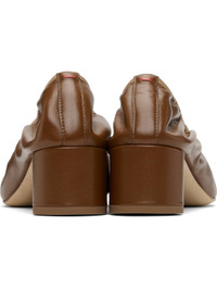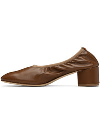 Grained nappa leather ballerina-style heels. · Elasticized collar · Red stitch at heel tab · Suede interior · Covered block heel with rubber injection · Nubuck sole · Heel: H2" Supplier color: Tobacco Upper: leather. Sole: leather, rubber. Made in Italy 252454F122012