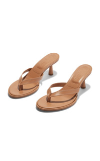Founded in 2015 by founder and creative director Luisa Dames, Berlin-based footwear and accessories brand envisions a more understated version of luxury and sets out to democratize modern design and enduring quality. Drawing from German concepts of modernity, Aeyde has developed a signature aesthetic defined by classic shapes and modern details—marrying form and function, the past and the present, the masculine and the feminine. The 'Daphne' is a classic thong set on a padded round-toe sole with a signature hourglass heel. PRODUCT DETAILS - Heel height measures 75mm/ 3" - Slip on - Composition: nappa leather - Designer color: Hazelnut - Made in Italy