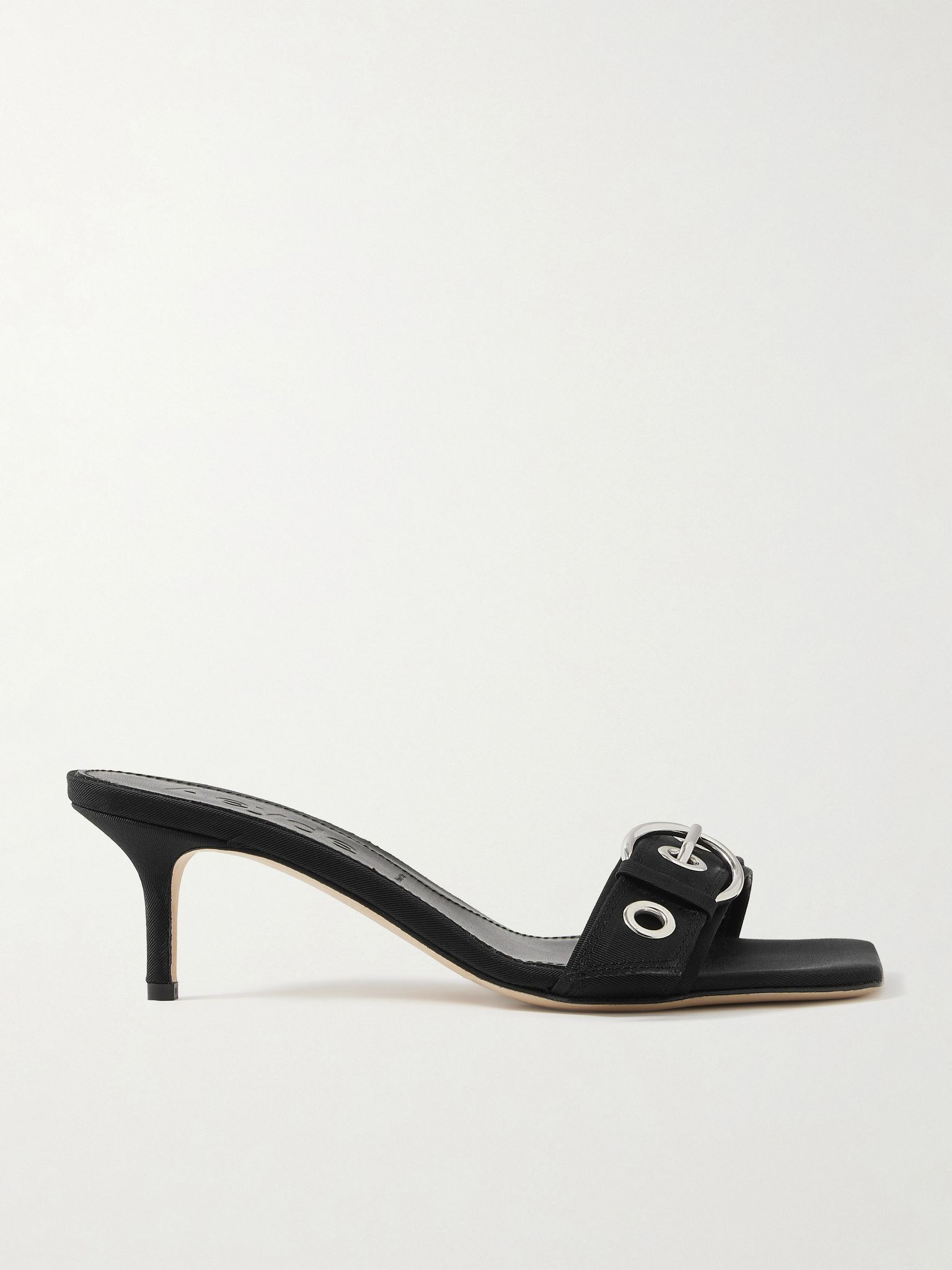 Aeyde's 'Ilvy' sandals imbue a minimalist '90s vibe. They're made from grosgrain in a simple square-toe shape and have 55mm heels. Size & Fit - Fits true to size, take your normal size - Italian sizing Details & Care - Heel measures approximately 55mm/ 2 inches - Black grosgrain - Slip on