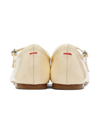 Patent calfskin ballerina flats in off-white. · Square toe · Pin-buckle strap at vamp · Stitching in red at heel tab · Logo embossed at footbed · Lambskin lining · Stacked leather heel · Leather outsole Supplier color: Creamy