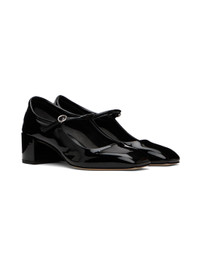 Handcrafted and LWG-certified patent calfskin Mary-Jane-style heels in black. · Square toe · Pin-buckle strap at vamp · Stitch in red at heel · Logo embossed at padded lambskin insole · Buffed lambskin and suede lining · Covered block heel with rubber injection · Nubuck sole · Heel: H1.75" Supplier color: Black patent Upper: calfskin, lambskin. Sole: leather, rubber. Made in Italy 242454F122016