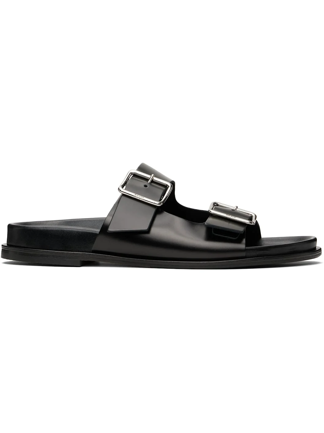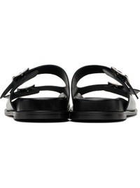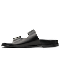 Polished calfskin sandals in black. · Open square toe · Pin-buckle straps at vamp · Suede sole with rubber injections · Logo-engraved silver-tone hardware Supplier color: Black calf Upper: calfskin, lambskin. Sole: leather, rubber. Made in Italy 251454F124014