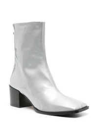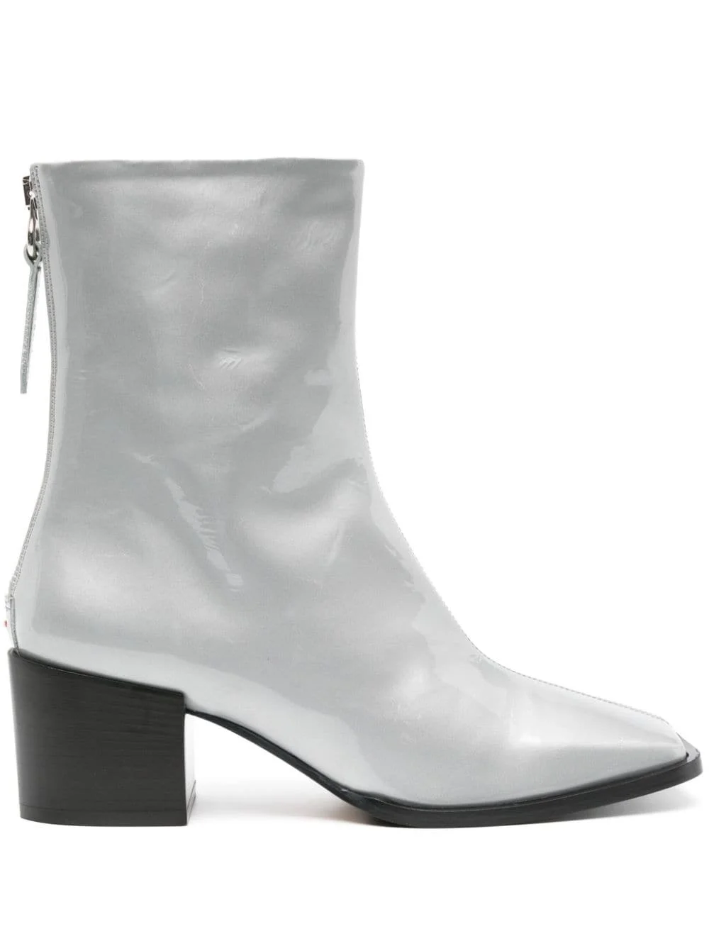 Amina patent leather ankle boots Aeyde's SS24 collection includes this pair of Amina ankle boots, which have been fabricated in Italy from light-grey calf leather. Set atop a mid-height block heel, they boast a signature square toe. Highlights - Light grey - Calf leather - Patent finish - Square toe - Rear zip fastening - 60mm stacked heel - Leather lining - Leather outsole - Ankle-length Made in Italy Composition Sole: Calf Leather 100%, Rubber 100% Outer: Calf Leather 100% Lining: Calf Leather 100% SIZE & FIT Measurement CIRCUMFERENCE 9.64 in(24.5 cm) HEEL 2.36 in(6 cm) HEIGHT 7.08 in(18 cm)