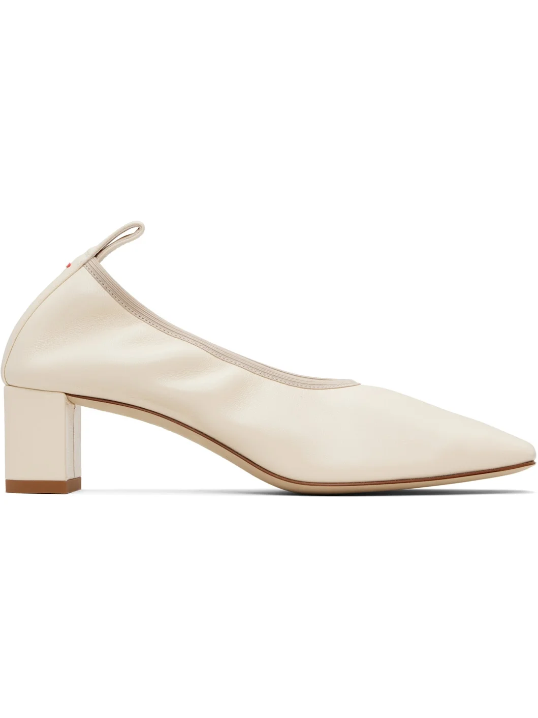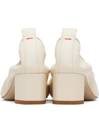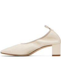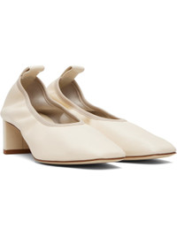 Buffed nappa leather heels. · Square toe · Elasticized collar · Pull-loop and red stitch at heel tab · Covered block heel with rubber injections · Nubuck sole · Heel: H2" Supplier color: Creamy nappa Upper: leather. Sole: leather, rubber. Made in Italy 252454F122004