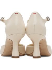 Grained nappa leather heels. · Pointed toe · Elasticized pin-buckle ankle strap · Red stitch at heel tab · Covered spool heel · Nubuck sole with rubber injections · Heel: H3" Supplier color: Creamy Upper: leather. Sole: leather, rubber. Made in Italy 252454F122019