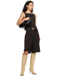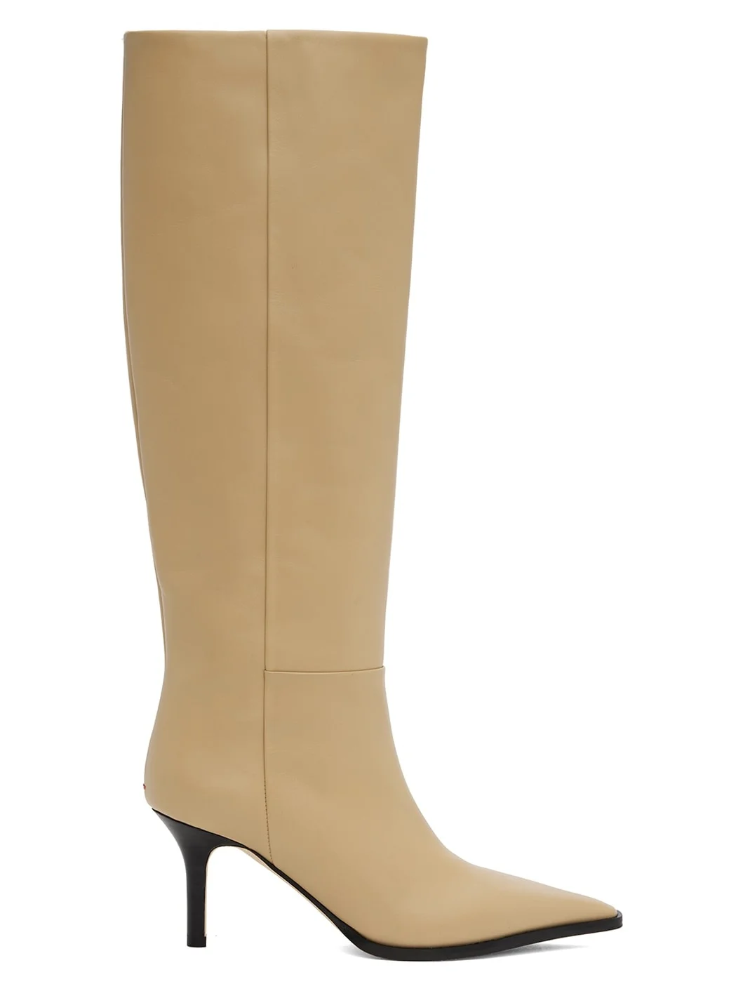 Knee-high buffed calfskin boots in beige. · Pointed toe · Zip closure at inner side · Grained lambskin lining · Stacked leather stiletto heel with rubber injection · Nubuck sole with rubber injection · Heel: H3" Supplier color: Latte Upper: calfskin. Sole: leather, rubber. Made in Italy 242454F115004