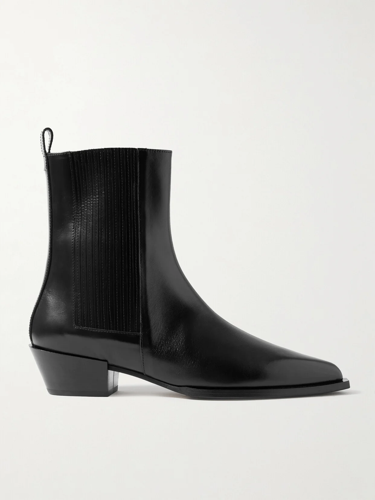 Minimalist silhouettes and high-quality materials are the backbone of aeyde's designs. Made in Italy from soft leather, these 'Belinda' ankle boots have sleek pointed toes and flexible elasticated panels that allow for easy on-and-off. The low Cuban heels create a subtle Western feel. Style yours with everything from jeans to midi dresses. Large to size. See Size & Fit notes.
