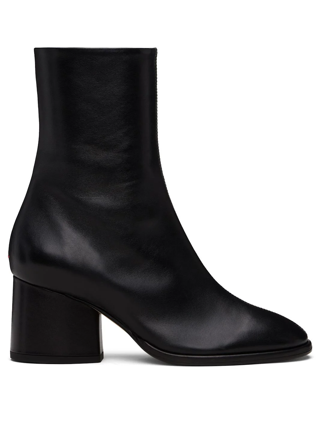 Ankle-high buffed nappa leather boots. · Central seam at vamp · Zip closure at inner side · Red stitch at heel · Buffed leather lining · Covered block heel with rubber injection · Leather sole · Heel: H2.25" Supplier color: Black Upper: leather. Sole: leather, rubber. Made in Italy 252454F113018