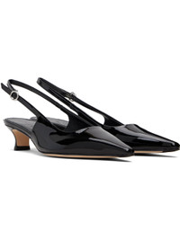Patent calfskin heels. · Pointed toe · Pin-buckle slingback strap · Buffed lambskin lining · Kitten heel with rubber injection · Nubuck sole with rubber injection · Heel: H1.5" Supplier color: Black patent Upper: calfskin. Sole: leather, rubber. Made in Italy 261454F122004