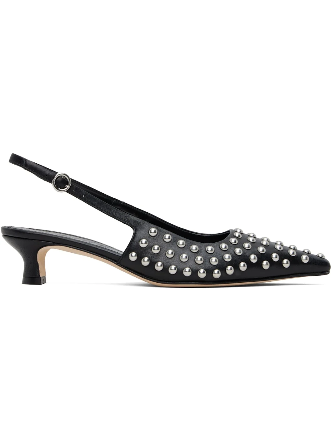 Buffed nappa leather heels in black. · Studs throughout · Pointed toe · Pin-buckle slingback strap · Buffed lambskin lining · Covered kitten heel with rubber injection · Leather sole with rubber injection · Heel: H1.5" Supplier color: Black nappa Upper: leather. Sole: leather, rubber. Made in Italy 252454F122000