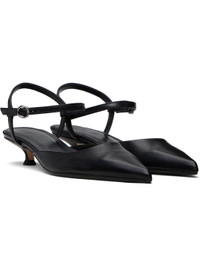 Buffed nappa leather heels. · Pointed toe · Pin-buckle ankle strap · Kitten heel with rubber injection · Nubuck sole with rubber injection · Heel: H1.25" Supplier color: Black Upper: leather. Sole: leather, rubber. Made in Italy 261454F122056