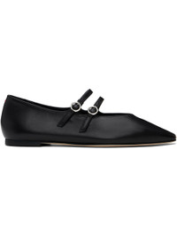 Buffed nappa leather ballerina flats in black. · Pointed toe · Pin-buckle straps at vamp · Red stitch at heel collar · Grained leather and suede lining · Suede sole with rubber injection Supplier color: Black Upper: leather. Sole: leather, rubber. Made in Italy 251454F118038