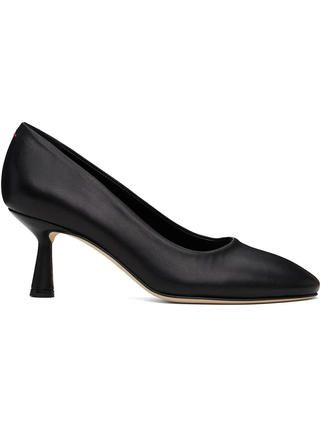 Buffed nappa leather heels in black. · Red stitch at heel collar · Logo embossed at padded leather footbed · Suede and buffed leather lining · Covered spool heel with rubber injection · Nubuck sole · Heel: H2.5" Supplier color: Black Upper: leather. Sole: leather, rubber. Made in Italy 251454F122056