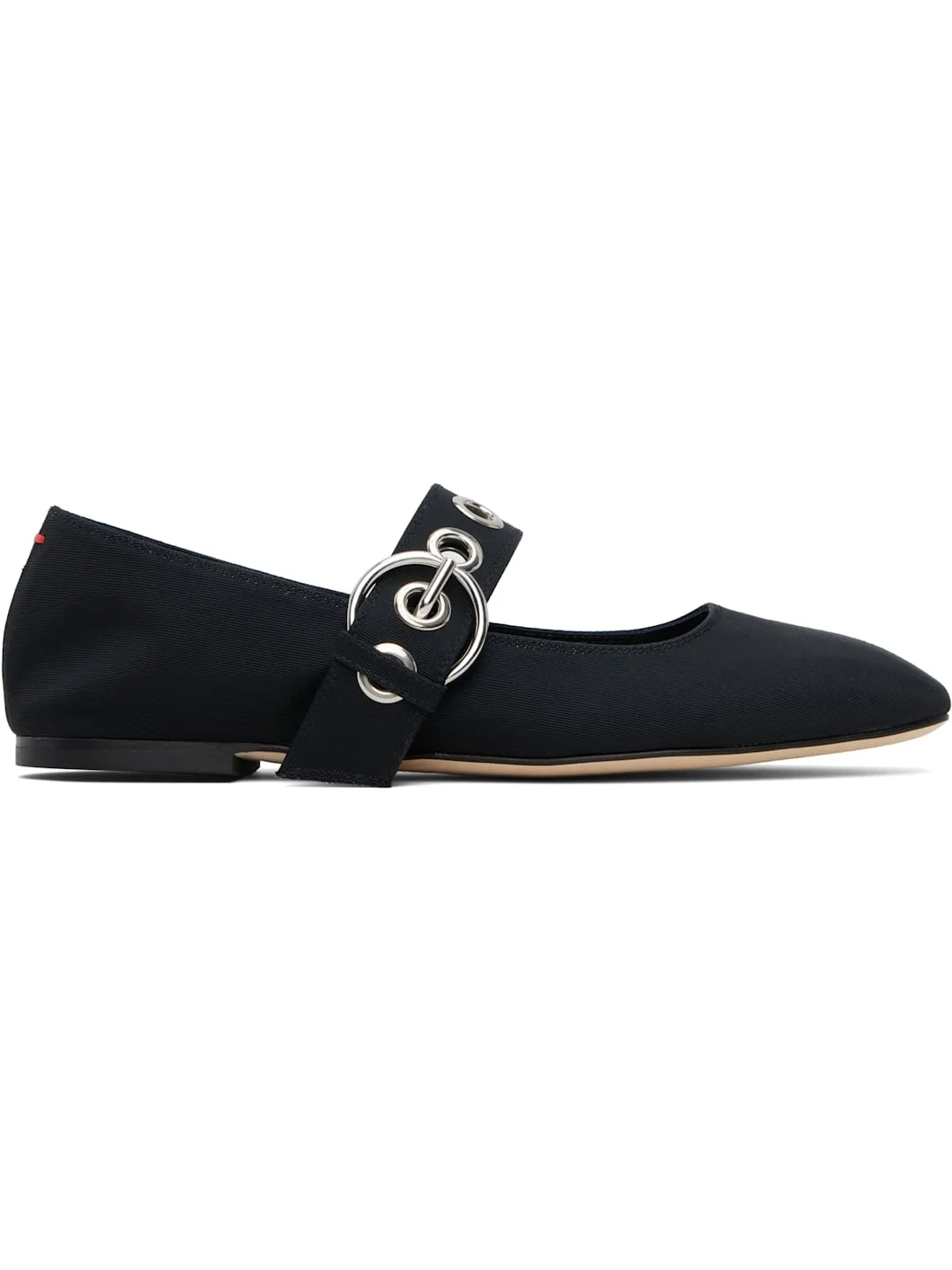 Black Uma Eyelet Mary-Jane Ballerina Flats