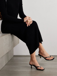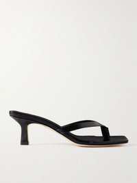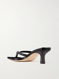 An elevated yet equally versatile take on traditional flip-flops, aeyde's 'Wilma' sandals can just as easily be styled for vacation or days in the city. They've been made in a family-run factory in Italy from smooth leather and have squared toes and manageable kitten heels. Size & Fit - Fits large to size, take a full size smaller than normal - Italian sizing Details & Care - Heel measures approximately 55mm/ 2 inches - Black leather (Goat) - Slip on Large to size. See Size & Fit notes.
