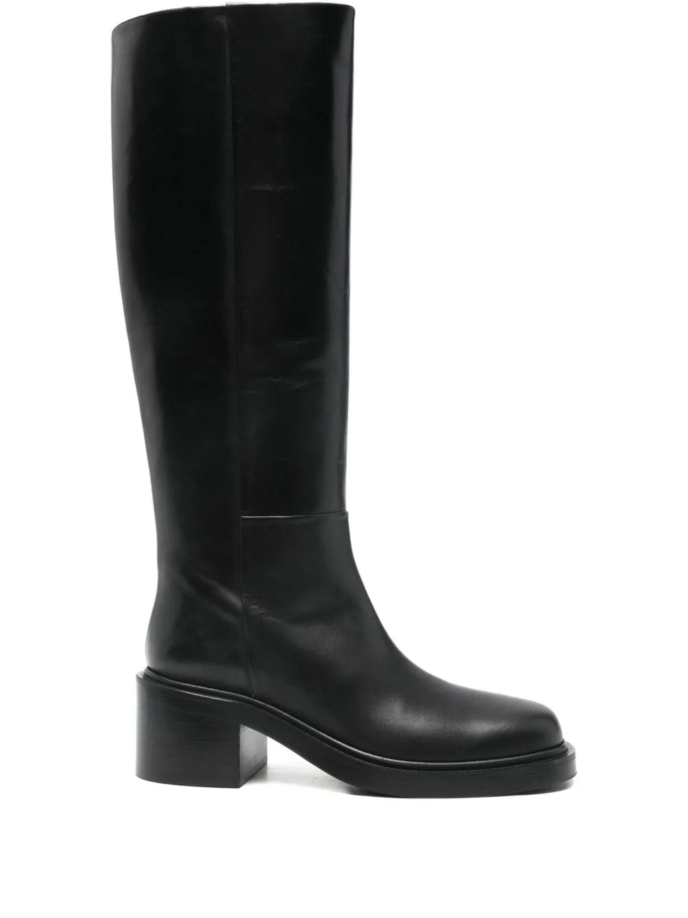 block-heel boots Highlights - Black - Calf leather upper - Block heel - Knee-high shaft - Round toe - Pull-on style Made in Italy Composition Outer: Calf Leather 100% Sole: Calf Leather 70%, Rubber 30% Lining: Lambskin 100% SIZE & FIT Measurement HEEL 2.75 in(7 cm)