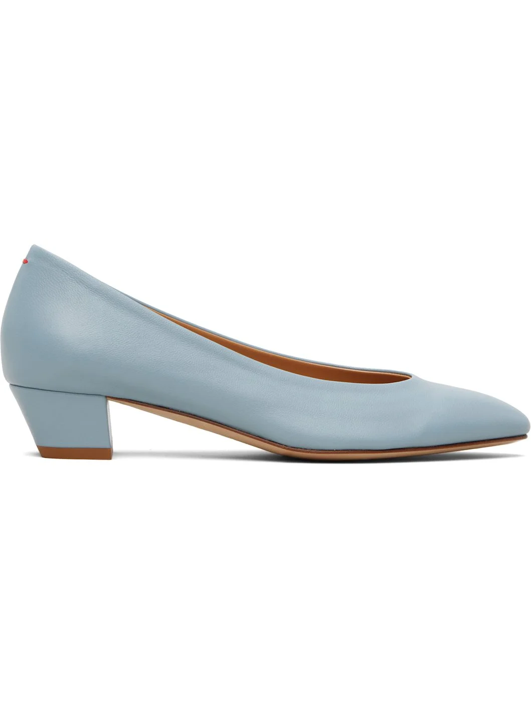 Nappa leather heels. · Pointed toe · Red stitch at heel collar · Block heel with rubber injection · Leather sole · Heel: H1.25" Supplier color: Glass Leather. Made in Italy 261454F122050