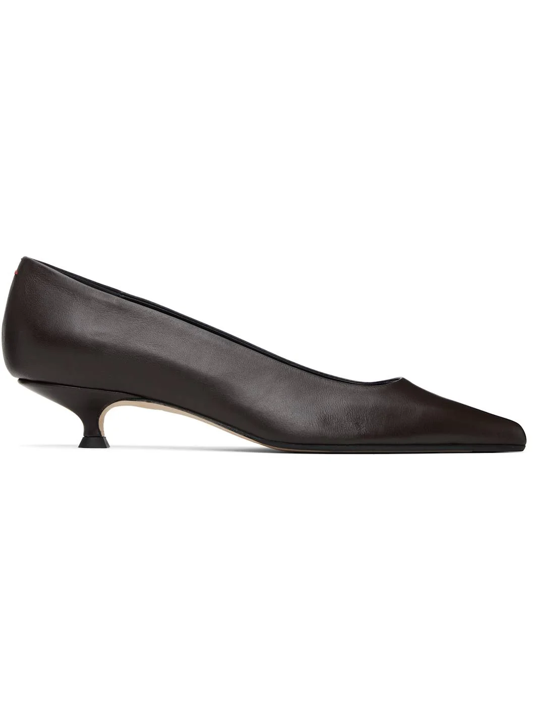 Grained nappa leather heels. · Pointed toe · Red stitching at heel collar · Kitten heel with rubber injection · Nubuck sole with rubber injection · Heel: H1.25" Supplier color: Moka Upper: leather. Sole: leather, rubber. Made in Italy 261454F122053