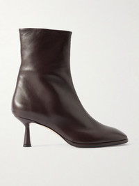 Berlin-based Aeyde blends "German concepts of modernity" with exceptional Italian craftsmanship. These 'Dorothy' ankle boots are made from panels of supple leather and have almond toes and slightly flared 50mm heels. Fans of the brand will recognize the singular red stitch on each of the heels. Lower-Impact Materials. This product is made using at least 50% lower-impact materials or ingredients. Find out more about our NET SUSTAIN criteria here. Size & Fit - Fits true to size, take your normal size - Italian sizing Details & Care - Heel measures approximately 50mm/ 2 inches - Chocolate leather (Goat) - Zip fastening along side - By purchasing this product, you are supporting responsible leather manufacturing through Leather Working Group.