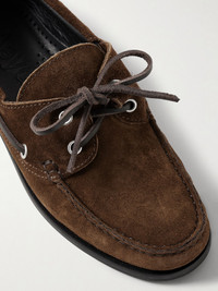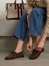 Aeyde's 'Harris' shoes draw inspiration from classic boat styles with their sleek lace-up detailing. They're crafted from smooth suede and have classic gathered toes and a single red stitch at each heel. Lower-Impact Materials. This product is made using at least 50% lower-impact materials or ingredients. Find out more about our NET SUSTAIN criteria here. Size & Fit - Fits true to size, take your normal size - Only available in full sizes, go up to the nearest whole size if you take a half size - Those with narrow feet may wish to take the next size down - Italian sizing Details & Care - Slight heel - Chocolate suede (Cow) - Lace-up front - By purchasing this product, you are supporting responsible leather manufacturing through Leather Working Group.