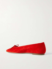 EDITORS'NOTES A slim bow gives aeyde’s ‘Delfina’ ballet flats an elegant touch. They’ve been crafted in Italy from suede with leather lining and classic round toes. They’ll become your go-to pair in the warmer months. SIZE & FIT - Fits true to size, take your normal size - Italian sizing DETAILS & CARE - Slight heel - Red suede (Goat) - Slip on - Due to the nature of the materials used, variations in grain and natural imperfections may occur