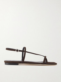 aeyde's modern approach comes through in the sleek lines and distinct minimalism of its designs. These 'Ella' sandals have been made in Italy from brown suede and have squared toes and slim straps that frame the foot.