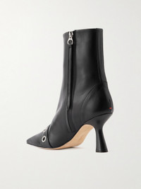 Aeyde's 'Halima' boots are modeled on styles from the early aughts. Crafted in Italy from polished leather, they have sharp toes framed by silver-tone buckle straps. Wear yours with cropped jeans or a midi dress to show off the cool detail. Lower-Impact Materials. This product is made using at least 50% lower-impact materials or ingredients. Find out more about our NET SUSTAIN criteria here.