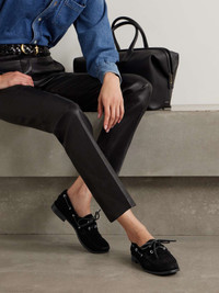 EDITORS'NOTES Aeyde's 'Harris' shoes draw inspiration from classic boat styles with their sleek lace-up detailing. They're crafted from smooth suede and have classic gathered toes and a single red stitch at each heel. Lower-Impact Materials. This product is made using at least 50% lower-impact materials or ingredients. Find out more about our NET SUSTAIN criteria here. SIZE & FIT - Fits true to size, take your normal size - Only available in full sizes, go up to the nearest whole size if you take a half size - Those with narrow feet may wish to take the next size down - Italian sizing DETAILS & CARE - Slight heel - Black suede (Cow) - Lace-up front