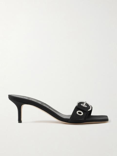 EDITORS'NOTES Aeyde's contemporary footwear balances chic minimalism with distinct shapes. These 'Ilvy' mules are made from light-blue satin and have a kitten heel and single strap at the square toes. Wear yours with everything, from a floaty dress to casual denim. SIZE & FIT - Fits true to size, take your normal size - Italian sizing DETAILS & CARE - Light-blue satin - Slip on