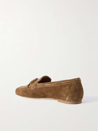 EDITORS'NOTES Aeyde's 'Jasper' loafers are relaxed and refined in equal measure, so they'll work for a number of different occasions. Crafted in Italy from suede, they're threaded with tonal laces that fasten into a bow and have elongated square toes. The slight heels offer ever-so-subtle lift. Lower-Impact Materials. This product is made using at least 50% lower-impact materials or ingredients. Find out more about our NET SUSTAIN criteria here. SIZE & FIT - Fits true to size, take your normal size - Italian sizing DETAILS & CARE - Slight heel - Light-brown suede (Calf) - Slip on - By purchasing this product, you are supporting responsible leather manufacturing through Leather Working Group.