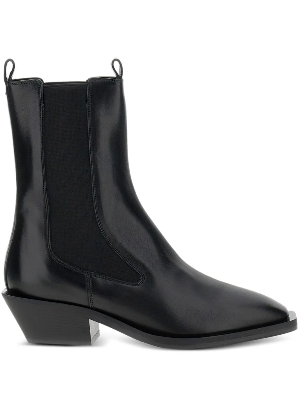 leather pointed-toe boots Highlights - Black - Calf leather - Pointed toe - Cuban heel - Elastic side panels - Pull tab Made in Italy Composition Lining: Calf Leather 100% Sole: Calf Leather 100% Outer: Calf Leather 100%