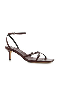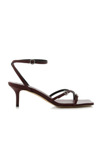 Founded in 2015 by founder and creative director Luisa Dames, Berlin-based footwear and accessories brand envisions a more understated version of luxury and sets out to democratize modern design and enduring quality. Drawing from German concepts of modernity, Aeyde has developed a signature aesthetic defined by classic shapes and modern details—marrying form and function, the past and the present, the masculine and the feminine. Slender buckled leather straps encase the foot with these timeless 'Libby' sandals. Reinforced with an ankle strap and set a top a walkable midi heel. PRODUCT DETAILS - Heel height measures 55mm/ 2" - Buckle fastening - Composition: 100% nappa leather - Designer color: Port - Made in Italy