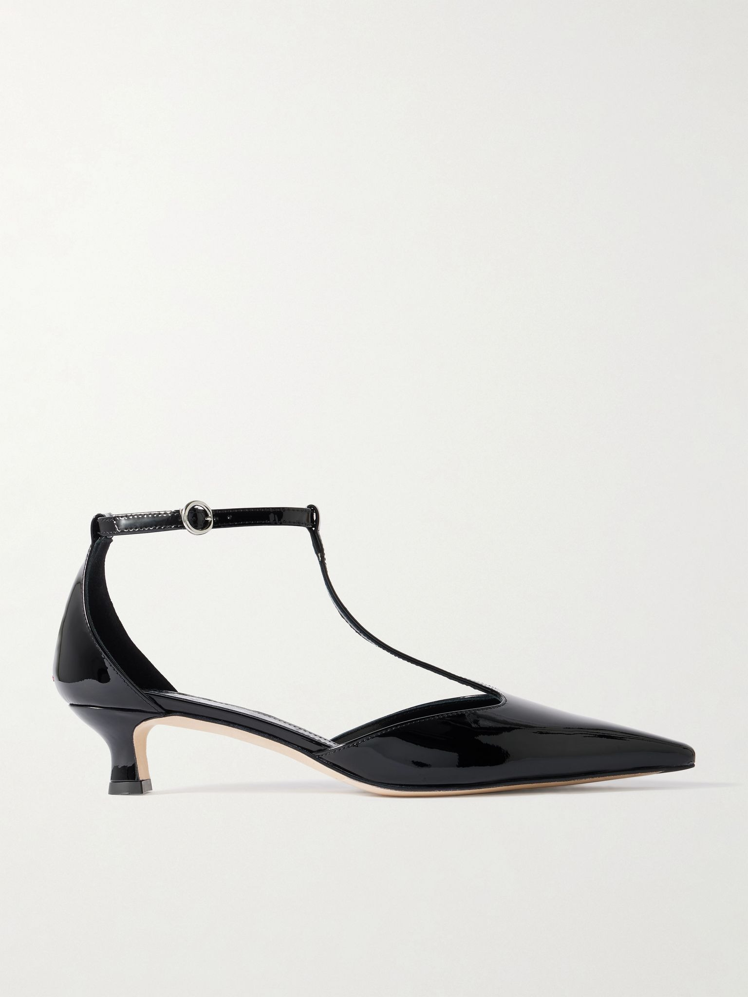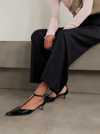 There's a vintage charm to Aeyde's 'Liz' pumps. Crafted from patent-leather, they have elongated point toes and foot-framing T-bar straps. The kitten heels offer 25mm of comfortable lift. Lower-Impact Materials. This product is made using at least 50% lower-impact materials or ingredients. Find out more about our NET SUSTAIN criteria here. Size & Fit - Fits true to size, take your normal size - Only available in full sizes, go up to the nearest whole size if you take a half size - Italian sizing Details & Care - Heel measures approximately 25mm/ 1 inch - Black patent-leather (Calf) - Buckle fastening ankle strap - By purchasing this product, you are supporting responsible leather manufacturing through Leather Working Group.