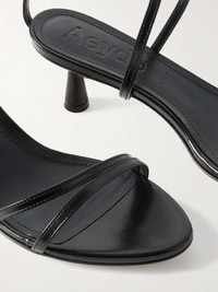 EDITORS'NOTES Aeyde's sleek and sculptural 'Maeve' sandals offer minimal design with maximum impact. They've been made in Italy from leather and have slim straps that crossover at the ankle. The kitten heel keeps them entirely wearable. SIZE & FIT - Fits true to size, take your normal size - Italian sizing DETAILS & CARE - Heel measures approximately 55mm/ 2 inches - Black leather (Goat) - Buckle-fastening ankle strap