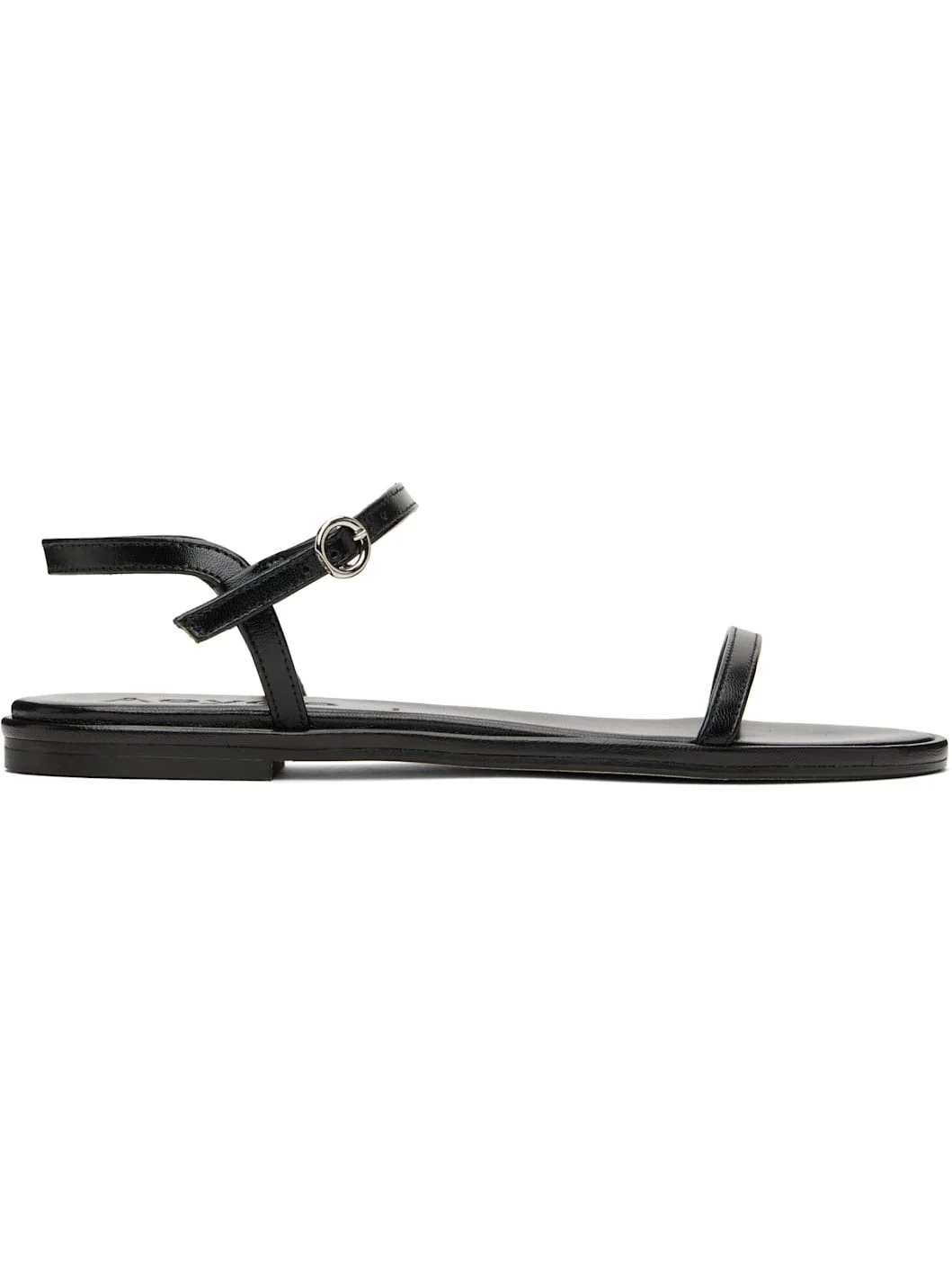 Buffed nappa leather sandals in black. · Open toe · Strap at vamp · Pin-buckle ankle strap · Suede sole with rubber injection Supplier color: Black nappa Upper: leather, lambskin. Sole: leather, rubber. Made in Italy 251454F124001
