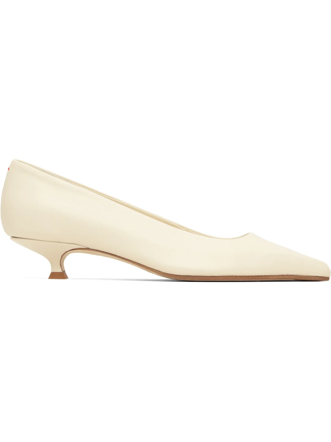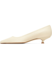 Grained nappa leather heels. · Pointed toe · Red stitching at heel collar · Kitten heel with rubber injection · Nubuck sole with rubber injection · Heel: H1.25" Supplier color: Creamy Upper: leather. Sole: leather, rubber. Made in Italy 261454F122054