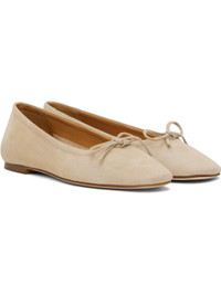 Goatskin suede ballerina flats in beige. · Bow accent at vamp · Red stitch at heel collar · Logo embossed at padded lambskin footbed · Stacked leather heel with rubber injection · Nubuck sole Supplier color: Latte Upper: goatskin. Sole: leather. Made in Italy 251454F118054