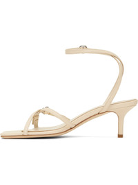 Buffed nappa leather heeled sandals in off-white. · Open square toe · Crisscrossing pin-buckle straps at vamp · Wraparound pin-buckle ankle strap · Covered kitten heel with rubber injection · Suede sole · Heel: H2.25" Supplier color: Creamy nappa Upper: leather, lambskin. Sole: leather, rubber. Made in Italy 251454F125019