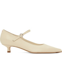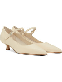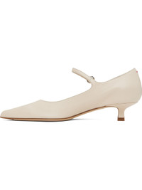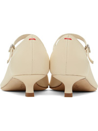 Buffed nappa leather heels in off-white. · Pointed toe · Pin-buckle strap at vamp · Red stitch at heel collar · Logo embossed at padded leather footbed · Nubuck and buffed leather lining · Covered kitten heel with rubber injection · Nubuck sole with rubber injection · Heel: H1.5" Supplier color: Creamy Upper: leather. Sole: leather, rubber. Made in Italy 251454F122053