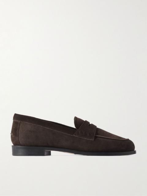 EDITORS'NOTES Family-run factories in Italy are responsible for the immaculate quality of Aeyde's shoes. Modern classics, these 'Oscar' loafers have been crafted from soft suede. They're crossed with coin slots just like original penny styles and stitched with a red line as a final flourish. Large to size. See Size & Fit notes. SIZE & FIT - Fits large to size, take a full size smaller than normal - Only available in full sizes, go down to the nearest whole size if you take a half size - Italian sizing DETAILS & CARE - Slight heel - Black suede (Cow) - Slip on