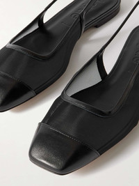 Geraldine leather-trimmed mesh slingback ballet flats Black