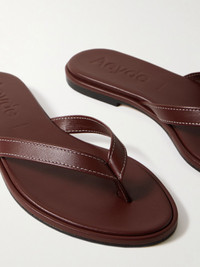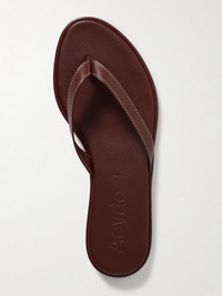 Berlin-based Aeyde draws on Germany's clean, modern aesthetic when designing its footwear. These 'Melody' flip flops are made from smooth leather that will only get softer and more comfortable with wear. You'll be able to style them with nearly anything. Lower-Impact Materials. This product is made using at least 50% lower-impact materials or ingredients. Find out more about our NET SUSTAIN criteria here. Size & Fit - Fits true to size, take your normal size - Italian sizing Details & Care - Slight heel - Claret leather (Goat) - Slip on - Designer color: Port - By purchasing this product, you are supporting responsible leather manufacturing through Leather Working Group.