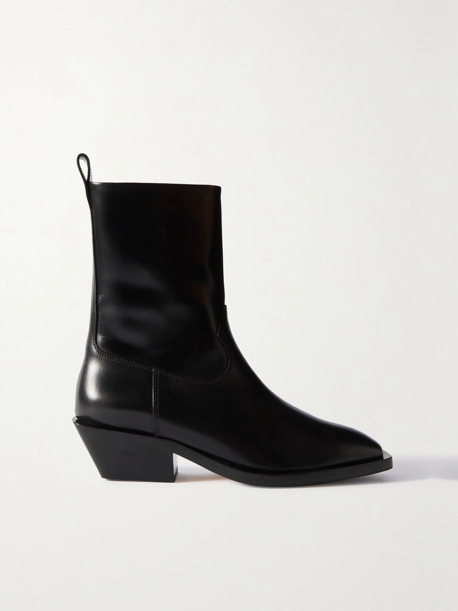 aeyde puts its signature minimalist, refined touch on the season's popular Western boot trend with this 'Luis' pair. Expertly crafted in Italy from smooth leather, they have sleek pointed toes and comfortable 35mm heels. The ankle height will work with everything from jeans to midi dresses. Size & Fit - Fits true to size, take your normal size - Only available in full sizes, go up to the nearest whole size if you take a half size - Italian sizing Details & Care - Heel measures approximately 35mm/ 1.5 inches - Black leather (Calf) - Zip fastening along side