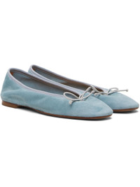 Kidskin suede ballerina flats. · Bow accent at vamp · Grosgrain trim at collar · Red stitch at heel collar · Leather sole Supplier color: Glass Leather. Made in Italy 261454F118040
