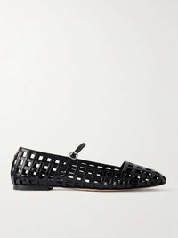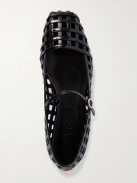 Uma Caged cut-out patent-leather Mary Jane ballet flats Black